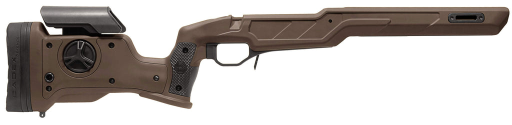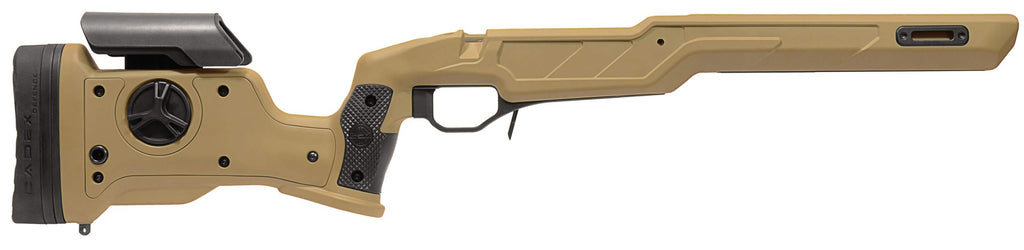 The Cadex Strike Nuke Evo micro-chassis system is designed for shooters looking for traditional stock ergonomics while benefiting from the advantages of a chassis system. Gen2 improved design with M-LOK technology and high density fiberglass reinforced polymer. The Strike Nuke Evo stock fits the CDX-SS SEVEN S.T.A.R.S., the CDX-R7 Series actions, most Rem 700 custom action clones and some Tikka® models.