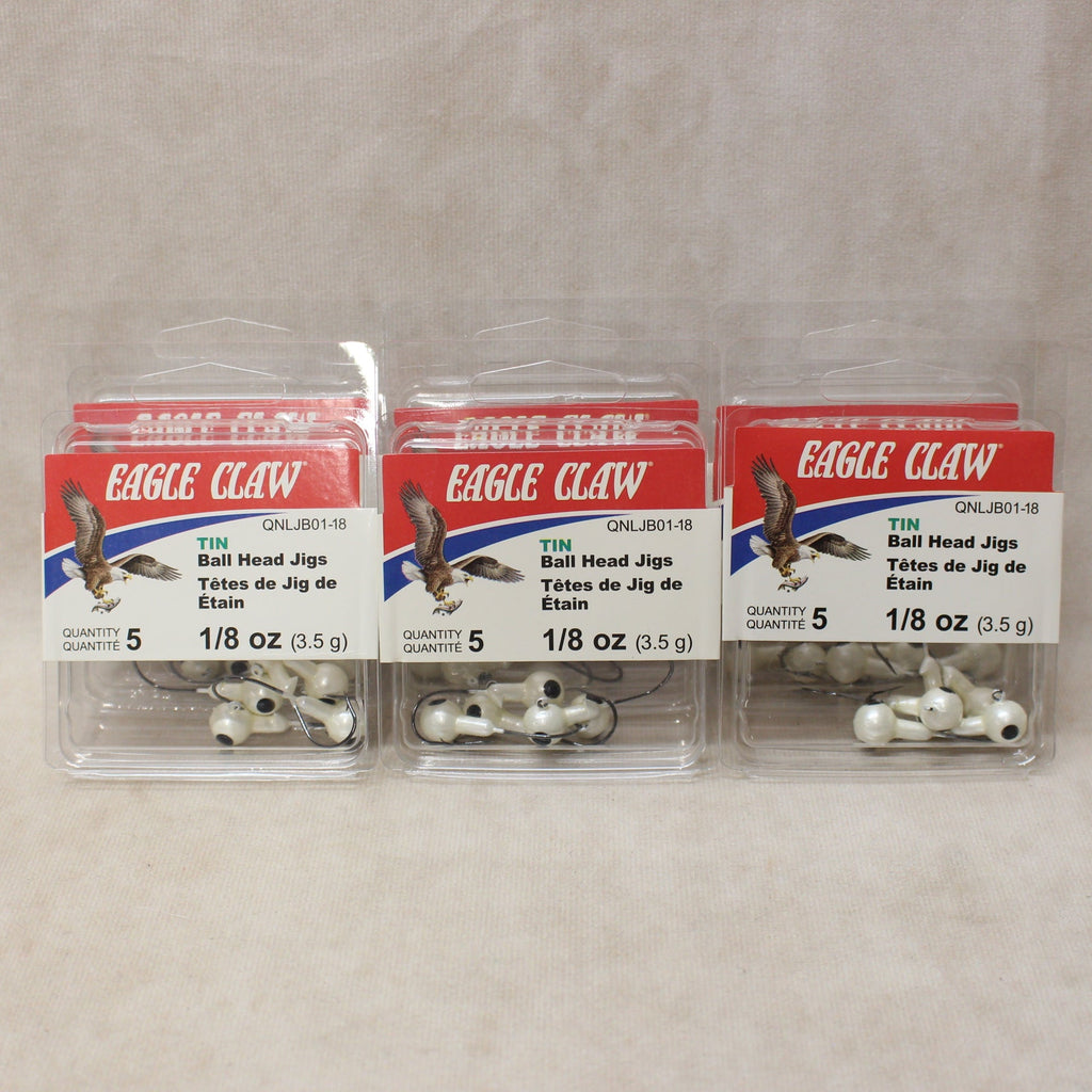 Eagle Claw 1/8-oz TIN White Ball Head Jigs x 30