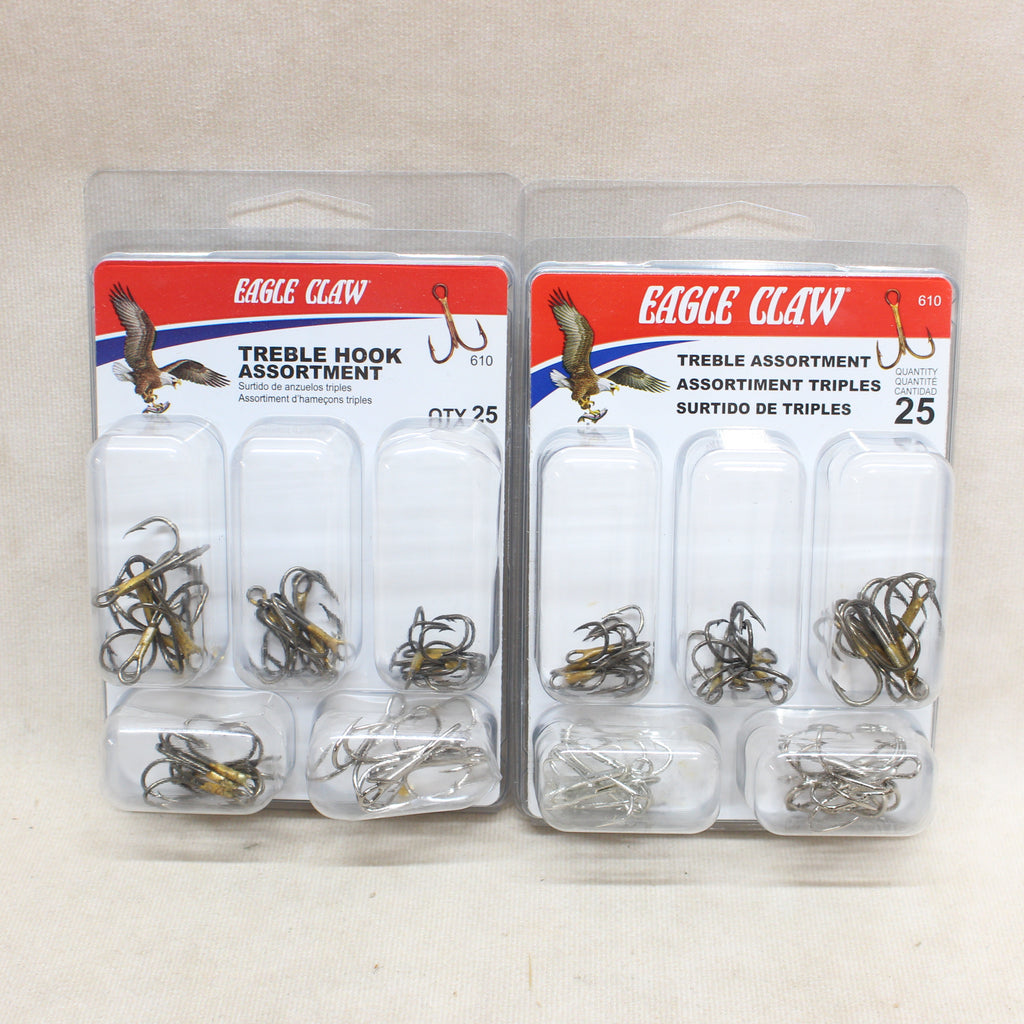 The Eagle Claw Treble Hook Assortment offers a variety of hooks to meet all your fishing needs. Known for their durability and reliability, these treble hooks are perfect for a range of fishing applications