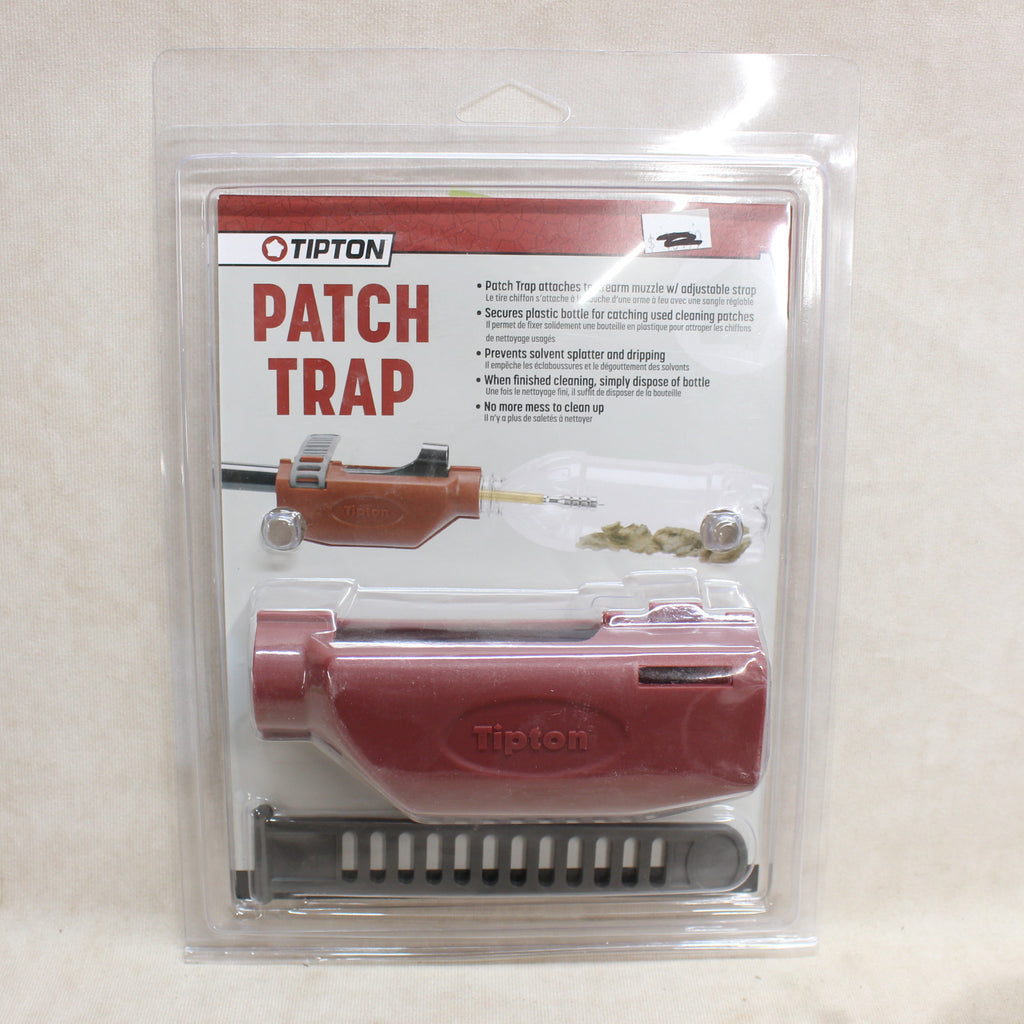 Cleaning the barrel on your rifle, shotgun or muzzleloader can be a messy chore. Solvent splatter, drips and dirty patches always seem to end up where you don’t want them. Strong solvents and powder residue can stain clothes and work surfaces. The Tipton® Patch Trap™ puts an end to the mess.