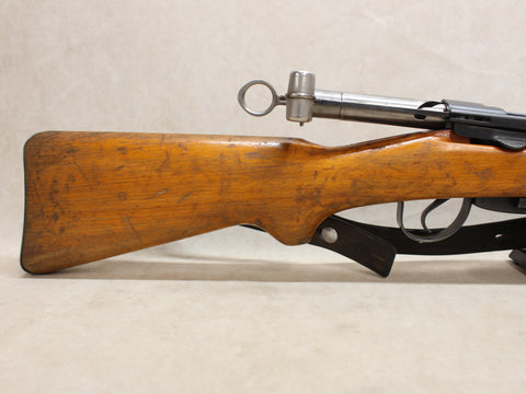 A surplus rifle from Switzerland, chambered in 7.5x55mm Swiss, used by the Swiss Armed Forces from 1933-1958, with some examples remaining in service into the 1970's.